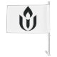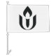 A white car flag featuring the Unitarian Universalist religion's chalice symbol, in black.