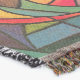 A quality printed throw has its advantages. This is a much finer weave throw than its loopier cousins, and though lighter, it is worth the investment for custom room accessorizing. The back is much prettier than the typical brown, and the fringe on the long sides very vivid, the selvage nicely done. Before photographing, I washed the throw in cold water, delicate, with a thicker woven throw the same size. On tumble dry low, this throw was dry in half the time as the other. This is a very practical quality if you use throws for furniture covers or to wrap up in frequently. The sleekness of the fabric makes it a great layer for accenting or protecting without the feeling of sitting on too much stuff. Perfect for napping or when you feel a light chill coming on. The color printing is beautiful and on this fabric, matched the design and color of my Photoshop image. This is an advantage for blending room fabrics and colors. The fringe on the short sides prints the colors from the design image and therefore varies from the side fringe. I streaked a white fractal line through the plaid pattern to give the illusion of weaving. This printed as crisp as an illusory thread, and put some white in the short side fringe, showing another advantage of print vs loomed- for artistic purposes, line lines, detail, and color integrity can be planned and preserved. My loomed throws have color limitations and more of a needlepoint texture. Print throws reproduce an exact image. The throw felt a little stiff straight out of the package, but this went away in the first delicate wash. Of course I searched the wash water for ink or bleeding and there was none.