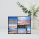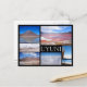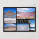 Postcard of a collage with multiple photos of the colorful landscapes in the Atacama desert in the Salar de Uyuni salt flats area on the Altiplano in the Andes in south Bolivia near the border with Chile with a black frame and the text: 'Uyuni'.