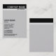 A vertical business card template with a black header edged with a white band. All details on the front with the back left blank, which can be left as is or further customized. The design also allows plenty of space for the addition of other elements e.g. a logo.