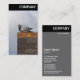 A vertical business card template with a black header with an image on the front. Company name in the header on the front and back with All other contact details on the back. The photo or image on the front can also be changed. The design also allows plenty of scope for additional customization.