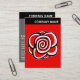 A vertical business card template with a black header with an image on the front. Company name in the header on the front and back with All other contact details on the back. The photo or image on the front can also be changed. The design also allows plenty of scope for additional customization.