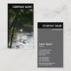 A vertical business card template with a black header with an image on the front. Company name in the header on the front and back with All other contact details on the back. The photo or image on the front can also be changed. The design also allows plenty of scope for additional customization.