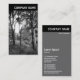 A vertical business card template with a black header with an image on the front. Company name in the header on the front and back with All other contact details on the back. The photo or image on the front can also be changed. The design also allows plenty of scope for additional customization.