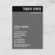 A vertical business card template with a black header with an image on the front. Company name in the header on the front and back with All other contact details on the back. The photo or image on the front can also be changed. The design also allows plenty of scope for additional customization.