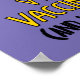 Let the world know that you're vaccinated with this fierce dinosaur. This poster features an illustration of a velociraptor in bright green with a bandage on his arm where he got his shot above the message "V is for Vaccinated (and Velociraptor)” all set against a purple background.