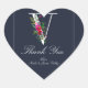 V Monogram Last Initial Modern Blue Floral Wedding Heart Sticker