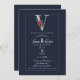 V Monogram Last Initial Modern Blue Floral Wedding Invitation