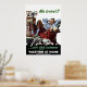 This vintage World War II poster features a father relaxing in his chair, with his dog, in front of a fan. It declares, "Me Travel? Not This Summer. Vacation At Home. Office Of Defense Transportation". Celebrate American and WW2 History with this digitally restored vintage war poster product from The War Is Hell Store.