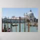 Poster print of gondolas and gondoliers on the water of the Canal Grande with the Santa Maria della Salute church in the background creating a romantic city landscape during the summer holidays in Venice, Italy. Great for decoration of a wall.