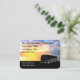 Vacation tour bus business card design template in a scenic sunset theme with luxury tour bus in the background and simple layout making this editable business card easy to customize online. Created for a Travel Agent, tour bus business, bus rental service, or Travel Expert. Presented on large format business card stock that is larger than standard size for better visual impact.