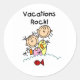 A cute stick figure design features two stick figures swimming with the fish and kid style text that reads "Vacactions Rock!".