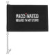 WOW! I LOVE this flag. The material and print are top knotch and it arrived very quickly. The design is fantastic! I LOVE the wide lip that goes on the window. Some companies make very flimsy flagpoles. 10/10. Thank you!