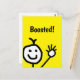 Design featuring a cute smiling face and a waving hand with the slogan 'Boosted!' Show that you've now had the Booster vaccination. Easily personalize this design by editing the template text or change the background color from a bright yellow. Thanks for viewing my designs!