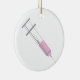 Lightweight, smooth, pure white ornament with nice sheen. Perfect size to be seen from across the room ... and to attract closer inspection! Price was great for ordering enough for the whole family! Clear, bold black design just as requested. Matches the order exactly. Just so nice!