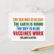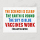 Hillary Clinton quote on vaccination: the science is clear: the earth is round, the sky is blue, vaccines work. Timely in light of the measles outbreaks and the Covid pandemic. Please vaccinate your children.