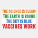Hillary Clinton quote on vaccination: the science is clear: the earth is round, the sky is blue, vaccines work. Timely in light of the measles outbreaks and the Covid pandemic. Please vaccinate your children to prevent the spread of diseases and illness.