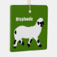 Add a name to create an adorable personalized gift. Whether they're a farmer who raises sheep or just someone who loves sheep and other farm animals, they're sure to appreciate the illustrations of Valais Blacknose Sheep in white and black on this Christmas ornament. The graphics are set against a grass green background with your name in bold white lettering.
