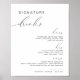 This signature drink cocktail sign features a bold contemporary font and modern minimalist design. Use this template to edit the fonts, font color, and background color to match your event needs. This is perfect for a wedding, couple's shower, bridal shower, engagement party or any other special event.
