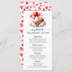 Valentine baby shower menu with sweet baby bear on clouds with cute heart balloons and heart background. Simply add your event details to this adorable sweetheart baby shower menu.