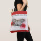 Pretty photo of a black and white butterfly, among pink and red flowers, is featured on this holiday tote bag. You can personalize it with a name or text of your choice, making this a perfect gift for Valentine's Day, Mother's Day, birthdays and more! Great for shopping, travel, work, school and more, sturdy and machine washable too.