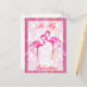 Pretty white and pink fleur Valentine postcard, with two whimsical pink flamingos. Fun way to send your Valentine love.