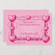 A hot pink Valentine's Day invitation of hearts and curling ribbon in a frame.