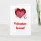 Valentine Friend Card with decorative Red Heart and a tiny heart on the right. Bright Red Text and all on a white background.