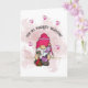 This cute gnome has gifts for your Valentine’s Day. The design has a soft pink background with pink hearts. The text on the front and inside can be customize.
