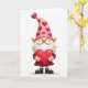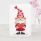 This greeting card shows a cute gnome centered on a plain white background, holding a shiny red heart close to its chest ❤️. The gnome wears a tall pastel pink hat covered with many small red hearts, plus one heart sitting right at the tip. A big, fluffy white beard covers most of its face, but you can still see two dark eyes and a round rosy nose that gives it a kind, friendly look. Its outfit is a deep red tunic that matches the heart details and keeps the whole look focused on love 💘. There isn’t any text printed on the front of the card, so the picture is the main message. The simple setting and soft lighting keep your attention on the gnome and the heart, making it feel sweet and caring. Send it to someone special and let them know you’re thinking of them this Valentine’s Day 😘.