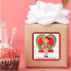 Square sticker to match our "Valentine Greetings" greeting card with a vintage image of a little girl sitting in a red, green and white heart seat wearing a pretty green dress, black shoes, and a big black bow in her blond curly hair. She holds a bouquet of red and white flowers in her hands. Red border. See matching greeting card, envelope, favor box, favor tag and label. See the entire Valentine's Day Sticker collection in the INVITES | Stickers & Labels section.