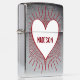 Modern style valentine heart featuring red star burst design. Personal lighter is perfect for adding your personal name, loved ones name or monogram initials. Great for a romantic gift.