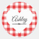 Valentine Heart Red Gingham Pattern Name Monogram Classic Round Sticker