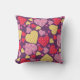 This pillow features a purple background with colorful patterned hearts scattered in a collage.