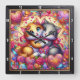 This enchanting square wall clock showcases a vibrant digital illustration of two kittens—one ginger and one grey—locked in a sweet, heartwarming hug. The kittens feature large, sparkling blue eyes and are surrounded by an explosion of romantic imagery, including ornate, patterned hearts, blooming red and pink roses, and swirling colorful ribbons. The background is a kaleidoscope of pastels and golden light, creating a high-energy, whimsical atmosphere. The artwork is housed within a modern black wood-grain frame with bold white numerals for clear visibility. This functional home accessory is a perfect decorative piece for cat lovers and holiday enthusiasts alike. Its rich detail and warm, loving theme make it an ideal gift for Valentine Day, anniversaries, or as a cheerful accent in a nursery or living space.