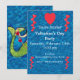 Valentine Mermaid Gold String of Red Hearts blue Invitation