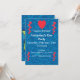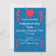 This flat card party invitation is a mix of dark blues with pretty red hearts and a mermaid on the back with a green tail holding a golden string of red hearts. Customize your information on the front with the templates.