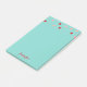 Designed with pastel teal background and you can customize to any color you wish. Small red and pink hearts on a string are across top of sticky notes and customized with name in red calligraphy script lettering across the lower area. Makes a great Valentine's Day gift idea for friends, boss, co-workers and more.