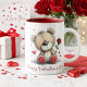 Valentine Teddy Bear with Rose and Hearts Mug