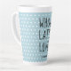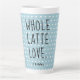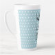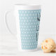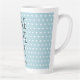Celebrate love and friendhip with this Valentine's day latte mug, featuring the text 'Whole Latte Love' in black script on a pastel blue background adorned with a pretty little hearts pattern. Personalize this heartfelt gift with your name! Exclusively designed for you by Happy Dolphin Studio.