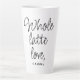 Celebrate love and friendhip with this Valentine's day latte mug, featuring the text 'Whole latte love' in black script calligraphy on a white background. Personalize this heartfelt gift with your name! Exclusively designed for you by Happy Dolphin Studio.