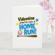 This Valentine’s Day card mixes love with a classic baseball theme in a cheerful way. The background is bright white with tiny polka dots that add subtle texture. Across the card, the message reads “Valentine you’re a HOME RUN!” with “Valentine” written in bold, slanted black letters highlighted by a warm yellow shadow. The words “you’re a” appear in simple black text, leading into “HOME RUN!” in striking electric blue. A baseball and bat sit nearby, reinforcing the sports theme. Small yellow and blue stars are scattered around, adding a celebratory feel. This card delivers a heartfelt compliment with energy and charm, perfect for Valentine’s Day.