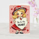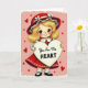This heartfelt Valentine’s card features a sweet young girl with big brown eyes and a gentle, welcoming smile. She wears a red hat decorated with small white flowers and a matching red dress with soft white accents. Golden curls peek out from beneath her hat, adding to her charming look. At the center of the card, she holds a large white heart with the words “You Are The HEART” written in flowing script. The soft pink background is filled with tiny red hearts, reinforcing the loving message. A white border frames the scene like a cherished vintage card. With its warm colors and thoughtful details, this card is perfect for sharing love and appreciation on Valentine’s Day. ❤️💌
