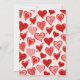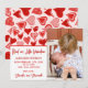 Our design features a clean white background, setting the stage for the adorable hearts pattern in red and pastel pink. The delicate pattern continues on the back, adding a touch of whimsy to this modern and charming announcement.