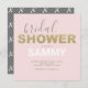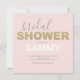 Celebrate love with these trendy Valentine's bridal shower invitations, featuring a bold modern font paired with handwritten calligraphy script typography. The word 'Bridal' is elegantly styled in faux gold over a blush pink background, creating a contemporary and romantic design perfect for a Valentine's Day bridal shower or brunch.