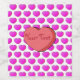 Design in shades of red with small pink heart pattern in the background.