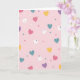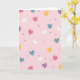 This design shows a soft pink background covered with hearts in fuchsia, white, yellow, teal, and light purple. Some hearts are large and easy to spot, while others are tiny, so the pattern feels light and full without looking crowded. Near the top, there’s a bright pink heart with a small watermelon slice and a tiny flower detail, which adds a sweet little surprise. In the middle, a white heart has a small crown on it, giving the pattern a cute, friendly touch. A few of the bigger hearts also have small dots on them, adding extra detail and texture. There isn’t any text on the card, so the heart pattern is the main focus from edge to edge. It feels like a simple, happy way to say “I care about you” 💘❤️.