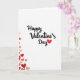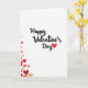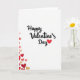 This greeting card features the words “Happy Valentine’s Day” in black, flowing lettering placed in the upper-right area, leaving lots of white space around it for an airy look. From the upper-left corner, a stream of hearts drifts diagonally downward, gathering more closely near the bottom-left like a gentle shower of affection 🥰. The hearts vary in size and finish, with soft pink tones mixed among deeper reds that look richly textured and touchable. One red heart cleverly replaces the apostrophe in “Valentine’s,” tying the message and the artwork together with a sweet visual wink ❤️. A few hearts are accented with gold glitter, catching the light and adding a warm sparkle without crowding the design. The bright white background makes every pink, red, and gold detail stand out while keeping the overall scene calm and romantic. Near the bottom-left, the densest cluster includes matte pink hearts beside darker red hearts, interspersed with small gold-glitter hearts that twinkle against the white.