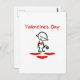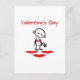 Postcard shows a cute but sad stick figure with a broken heart, holding a wilted flower, plus the words "Valentine's Day." Add text on the back.