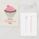 A set of 100 Valentine's cards (chubby business cards) featuring an illustration of a chocolate cupcake topped with pink icing and heart. Text says "Happy Valentine's Day." Back side has "To" and "From" fields.